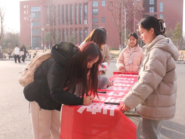 明纪固根基,正风育新人。为深化大学生纪法教育,夯实廉洁文化根基,以优良家风引领清正学风,引导青年学生在认知层面筑牢纪法红线,在情感层面涵养廉洁自觉,在行为层面践行家风传承,徐州工程学院金融学院于12月10日组织开展横幅签字活动,为培养德法兼修、家风淳正的新时代金融人才奠定坚实的思想基础。