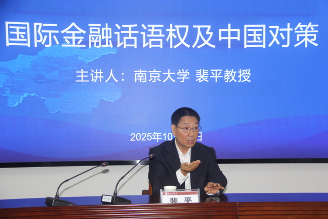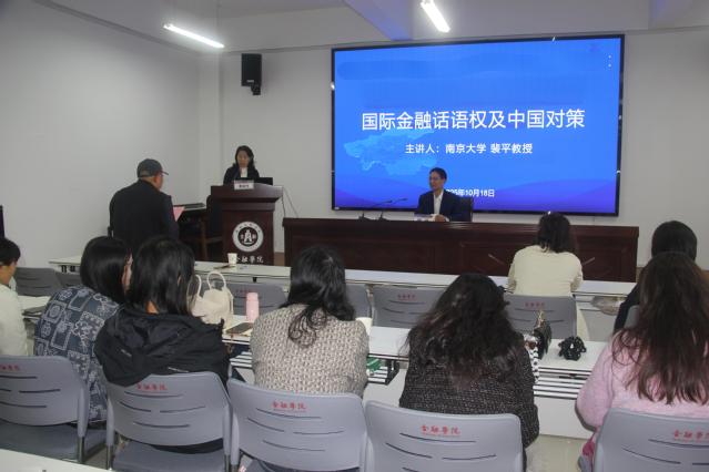 10月18日下午,南京大学国际金融管理研究所所长、二级教授、博士生导师裴平教授应邀在东校区敬诚楼505会议室作题为《国际金融话语权及中国对策》的专题讲座。讲座由金融学院院长董金玲教授主持,学院全体教师和学生代表认真聆听了讲座。