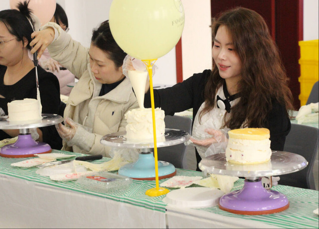 活动伊始,董金玲院长向全体女同胞致以节日的问候与祝福,感谢大家在教学、科研与学生工作中付出的辛勤努力,鼓励大家在忙碌的工作学习之余,享受生活、绽放光彩。随后,专业烘焙师现场演示了蛋糕胚分层、奶油涂抹、水果装饰等基础步骤,从工具使用到细节技巧,耐心细致地为大家讲解示范。在轻松欢快的氛围中,老师们纷纷戴上手套、拿起裱花袋,化身“甜点师”。大家一边交流心得,一边发挥创意,精心搭配草莓、蓝莓等鲜果,现场欢声笑语不断,气球与色彩斑斓的蛋糕相互映衬,处处洋溢着温馨与喜悦。